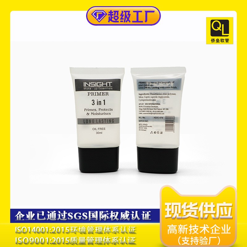 35管径黑色扁盖化妆品乳液包材